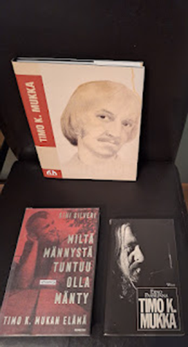 Olen nuorena lukenut koko Mukan proosatuotannon, ja myös kuvassa näkyvän Erno Paasilinnan kirjoittaman elämäkerran Timo K. Mukka: Legenda jo eläessään (1988). Se löytyy kirjahyllystäni, kuten myös taustalla oleva Riitta Kuusikon 1996 toimittama Timo K. Mukka 1955 - 1973.